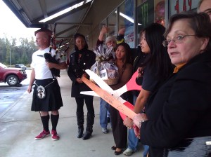 This morning, Nov. 1,  the 723 Networking group held a ribbon cutting at the new Dollar Town store in Elk Plain’s Bethel Station Shopping Center. Complete with gigantic scissors, bagpipes and a gift basket to the owner for all her hard work. It is exciting to know that businesses are willing to start up new locations. It surely must be a sign of the economy starting to move along a little.