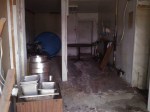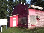 Many people have expressed sentiment regarding the landmark that the bright red, now faded, Elk Plain Café has become in the community. I contacted Jean Sensel who was the Spanaway representative on the Landmarks Commission and County Councilman Tim Farrell who is an avid local historian. Neither thought the building was salvageable due to its deteriorated condition and county health regulations. Indeed, Kevin Greely took me inside. With a flashlight and the flash turned on, I managed to get a few photos of the molded wallboard, dusty bench seats and torn up floors.