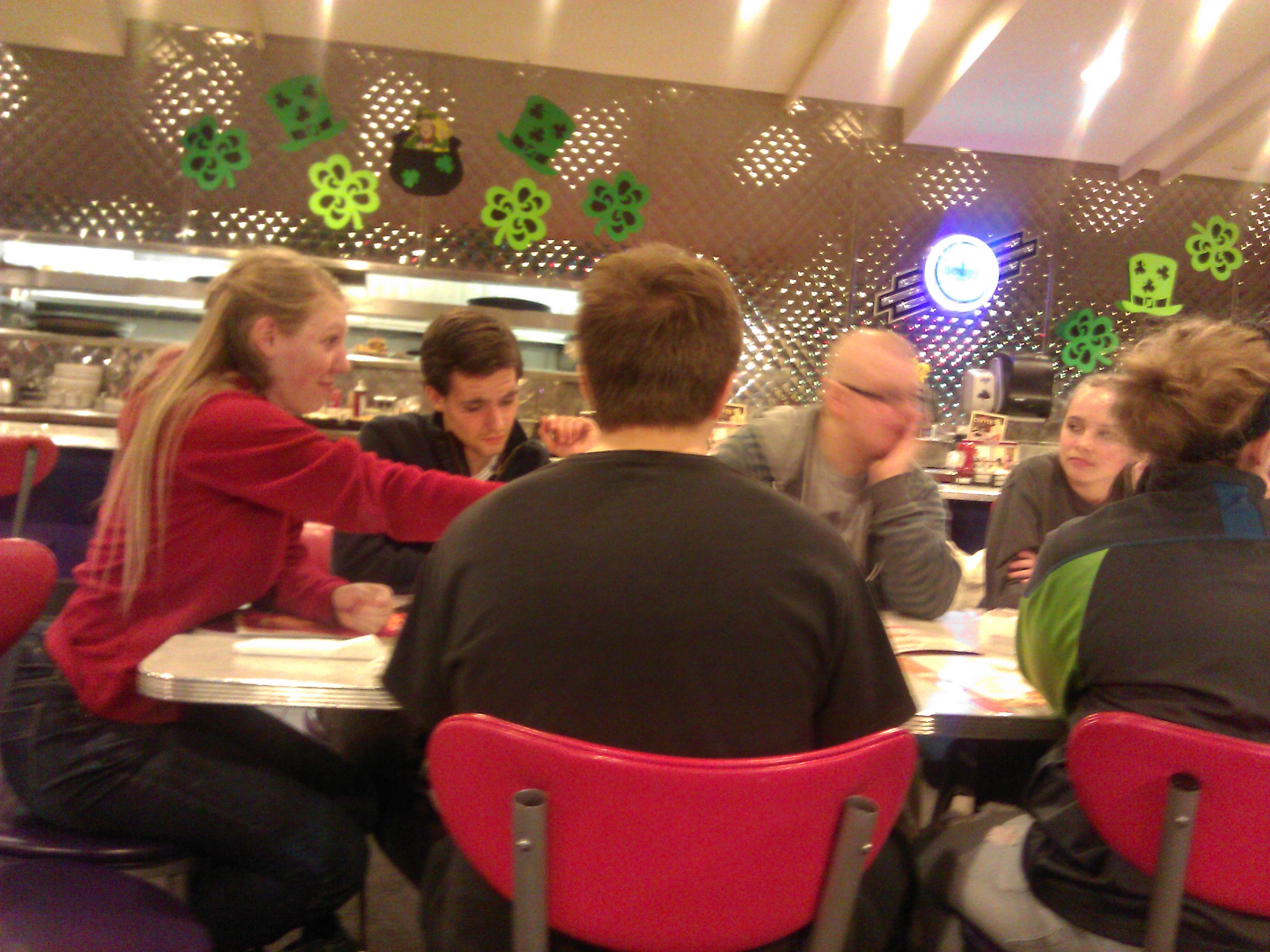 Cast parties are a special event. Everyone has gotten to know each other, the play is over and there is celebration, joy and sorrow all mixed into one big party. For us, it was a surprisingly entertaining evening at the Denny’s. Almost 30 young people streamed in, most of them still had stage makeup in place and some were still in costume. There was hugging, chatter, giggles and of course, some impromptu drama. As a high school Thespian myself, I remember those parties fondly.