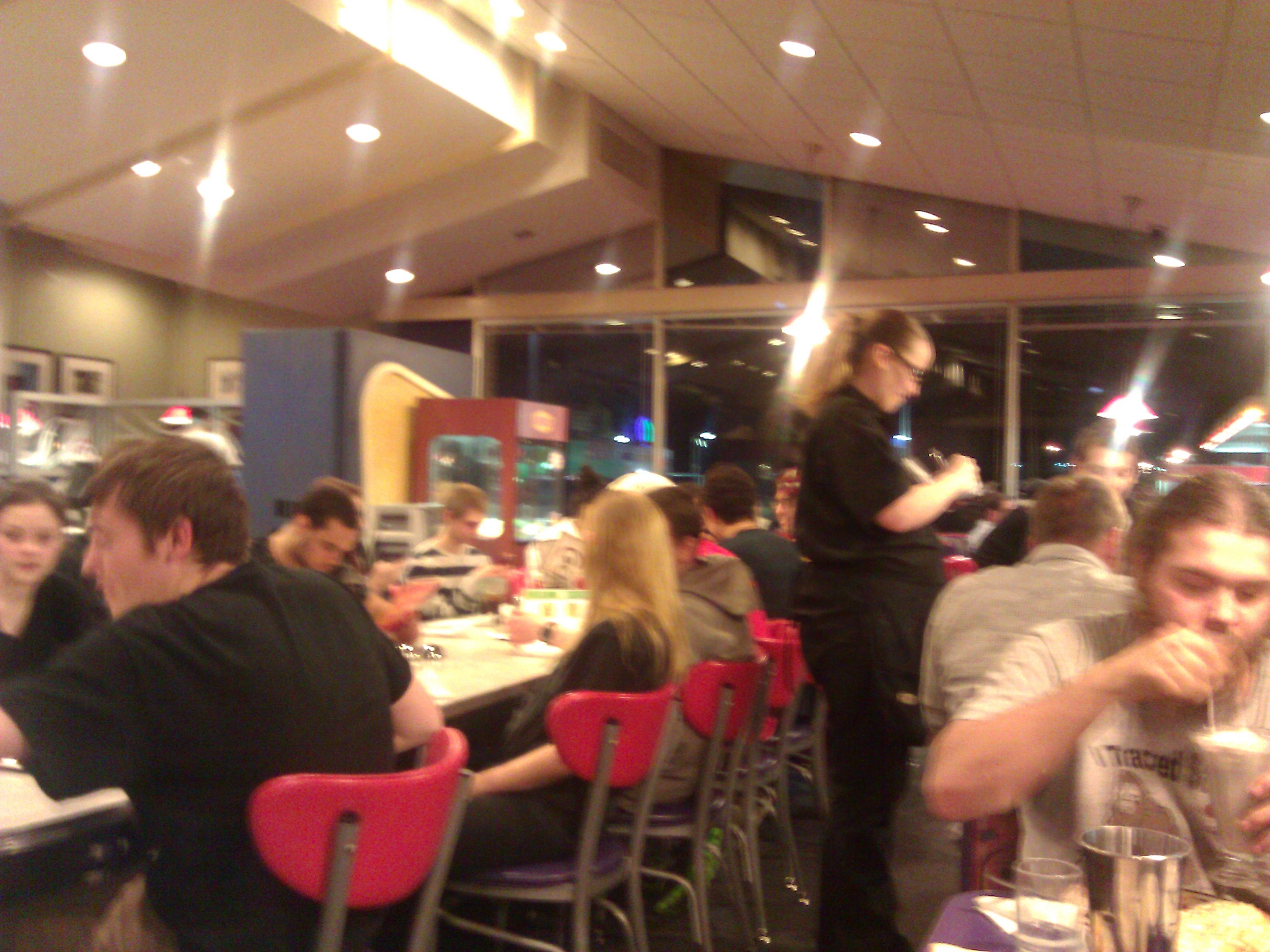 So late in the evening, I sat down for a quiet chat with my cousin Dave at the Denny’s on Pacific Ave. beside SR512. We soon discovered it was the site for the cast party from Franklin Pierce Cardinal Theater Company’s production of “You Can’t Take it With You.” The show ran March 6 through March 9 and it wasn’t on th Post’s calendar, so we have to make sure that doesn’t happen again!