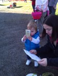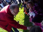Pastor Terry Kaiser greets the little ones before the hunt.