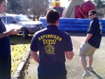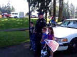 Children tour the Pierce County Sheriff Deputy’s car as he poses for photos