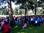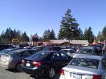 The parking lot overflowed, good thing Clover Creek Elementary was just down the street. That minivan with the open doors has an exhausted napping dad in it. 🙂