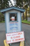 The Spanaway Park boat launch was closed Monday May 6. It was a decision of the Parks Department, not the Pierce County Sheriff. There were signs at both entrances and in two places with red cones blocking access to the boathouse. “Boat Launch Area is closed due to drowning.”