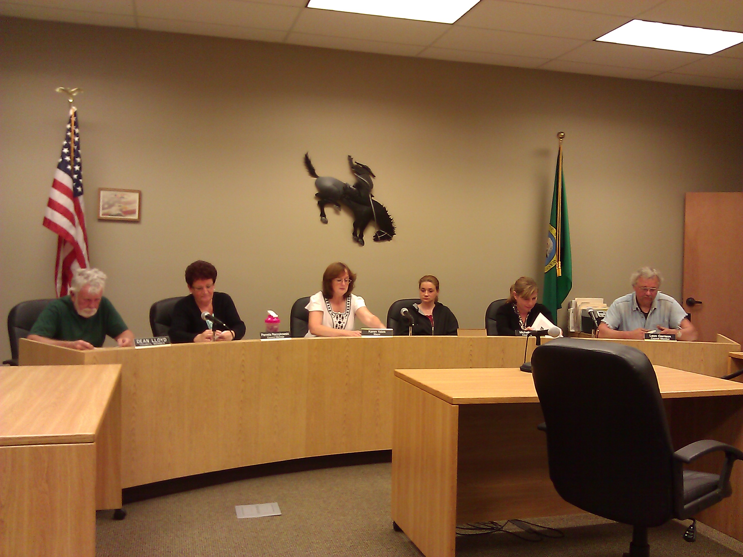 The meeting opened with Fire Chief Vellias presenting Roy Policeman Dan Rosier with a recognition for his assistance in the rescue of a baby that had been put in a freezer. They needed the support to secure the location due to the domestic situation before they could rescue and assist the infant. The wait for a Pierce County Sheriff would have been significantly longer so the Roy policeman assisted instead. (The infant survived.)