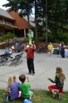 Wednesday, July 10 at noon, Pacific Lutheran University held their summer Raspberry festival. There was music by the Fabulous Murphtones and performances by Roberto the Magnificient formerly of the Gentlemen Jugglers. There were children, students, faculty, staff and many local residents all together enjoying a beautiful, sunny summer day and the wonderful ambiance of the park-like setting below the University Center where Clover Creek used to run free.