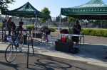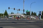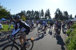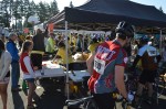 They turn on 104th Street, avoiding the messy intersection over SR512. From 104th, they turn onto Waller Road, 152nd Street and then B Street. At Spanaway Middle School, most of them take a break. There’s bicycle repair, massage, food, lots of porta potties (with long lines), and liquids to refresh the water bottles. Thousands of cyclists at a time are there starting before 7 a.m. Some kept riding straight past it on B Street.