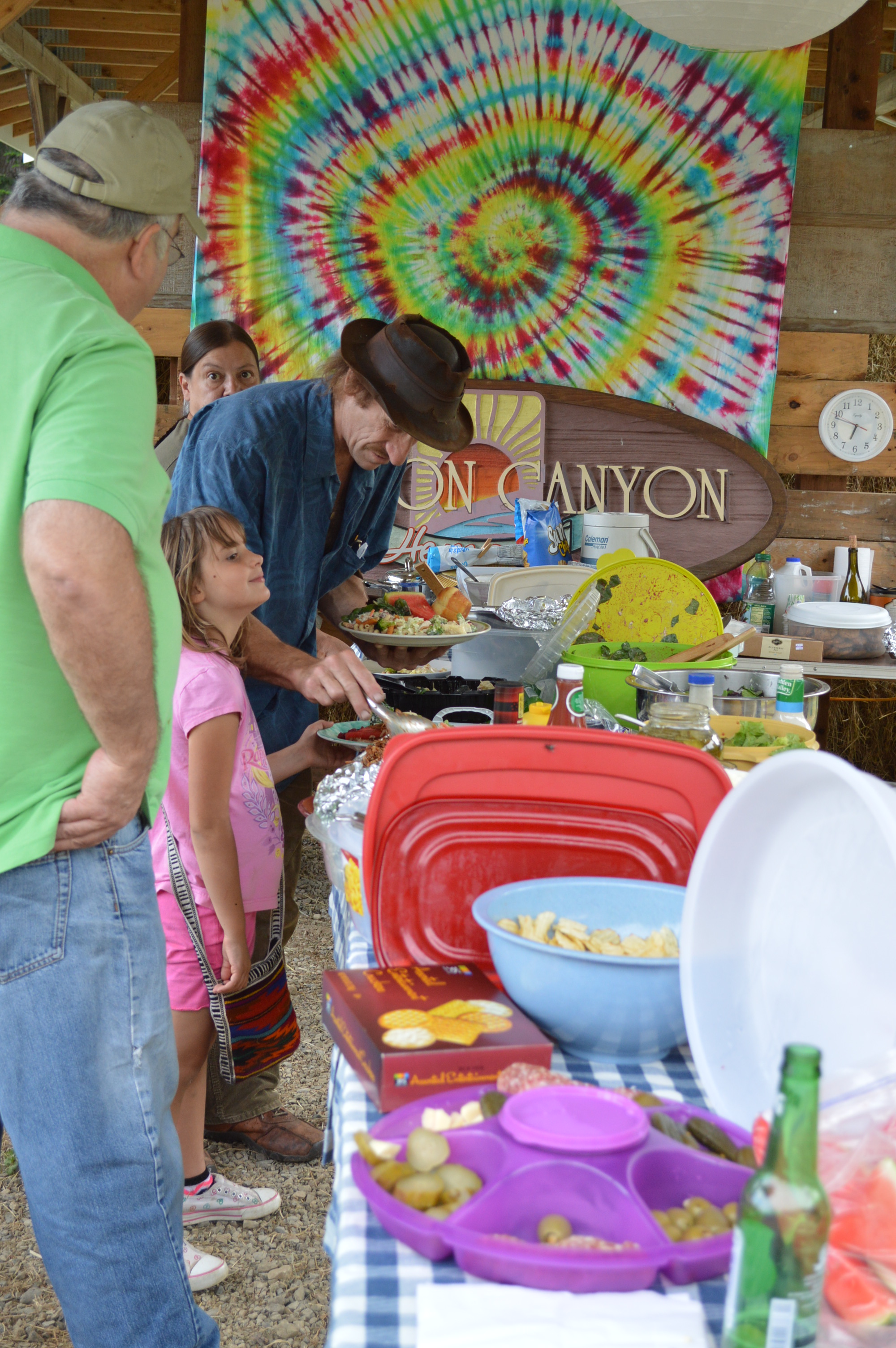 Around 6:30 the Potluck was in full swing. People bought awesome homemade delights to share. There were no paper plates, you had to eat on real dishes with metal tableware. After dessert, each person was expected to wash their plate and set it in the drainer. Items for disposal were sorted to compost, recycle and garbage.