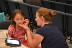 This turned out o be no ordinary school supply fair. There were free dental checkups, a barbecue and a bouncy house outside the church. Inside there were school supplies like backpacks, paper, notebooks, pencils and more. There were also hot green tennis shoes in a variety of sizes, dozens and dozens of cookies, face painting, free haircuts donated by a half-dozen beauticians and a couple of clown warding around making sure everyone was having a great time.