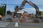 PARKLAND, WA — Monday morning the trackhoe pulled in early, ready to start the demolition of the buildings on Garfield Street from “C” Street almost to the Western Auto. This is part of the project to build the new Garfield Station, a four-story apartment building with shops and dining on the first floor. A bit of urban living in the heart of downtown Parkland.