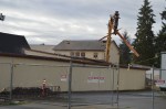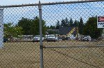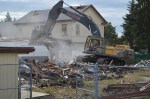 Tuesday, August 27, 2013, Rhine began demolishing part of the one-story wing of the old Parkland Elementary School. This demolition is part of the  project to build Garfield Station, a high rise apartment building with shops in Parkland near PLU. The main portion of the Parkland School is still standing, it is going to be used for the Mt. Rainier Lutheran High School starting this year.