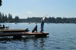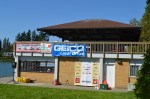 From Spanaway, NumNum of Team Toothpick Racing could not race their board today due to fiberglass peeling on the bottom. So they set it up outside the pits and let people climb into it for fun. The name toothpick came from an accident one of the team members had before they started racing the inboards, they were racing the radio control boats and accidentally turned off the radio, but not the engine. The boat smashed into the wall at the Spanaway Lake boathouse going full speed.