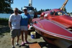Early in the day the judges informed us there was a change in a race outcome from Saturday. The inspectors look at over the winning boats after the race. In the NM race the #6 boat with driver-Kevin Eacret, there was an issue with the fuel so the first place went to # 90 driven by Karen Toulouce. This was the 293rd race for #90 and it is retiring now. Owner, Pat Bertram of Eatonville (Class of ’54) said he will be selling it to a person who plans to place it in a museum.