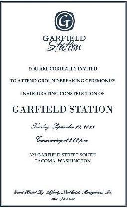 Few details are available about who will participate in the groundbreaking ceremony. The event is hosted by Affinity Real Estate Management, Inc., the manager of the new property, Garfield Station.