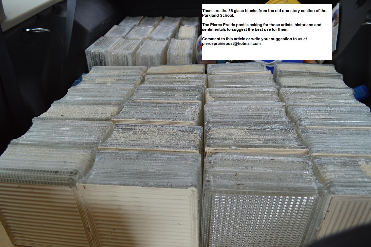 After the demolition, the project supervisor from Korsmo Construction donated 36 glass blocks from the old school to the Spanaway Community Association/Pierce Prairie Post.