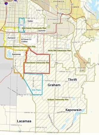To help you identify with which community you actually live in, we have created a modified map from the Pierce County GIS system.