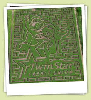 The Twin Star Dollar Dog, embedded in the corn maze represents the importance of educating our children in financial literacy.