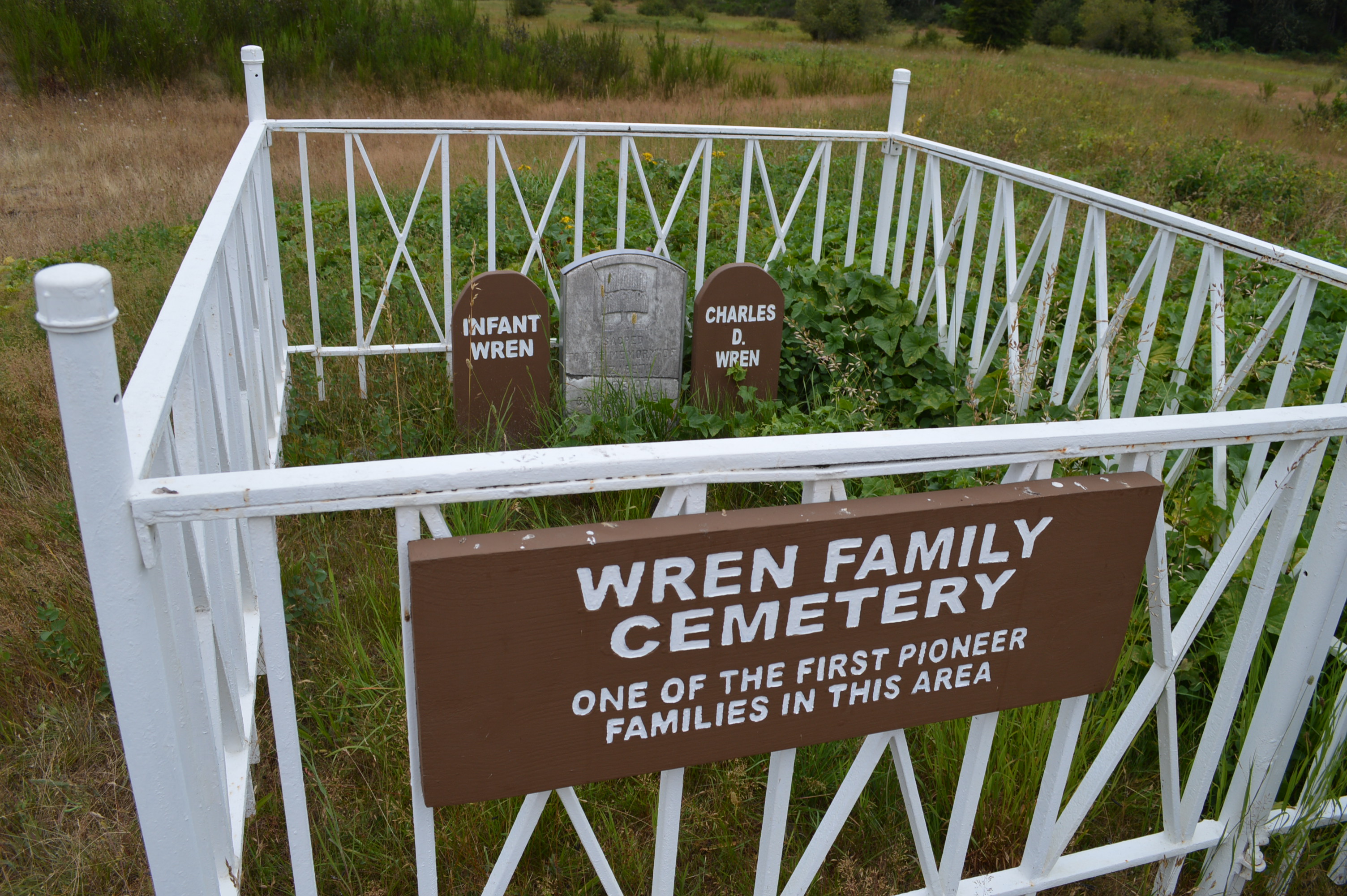 Charles Wren died in 1873, his farm was split between two daughters. Charles Wren was buried on his Donation Land Claim which is now part of the military base beside his wife Elizabeth who was buried with a stillborn son and an infant daughter.