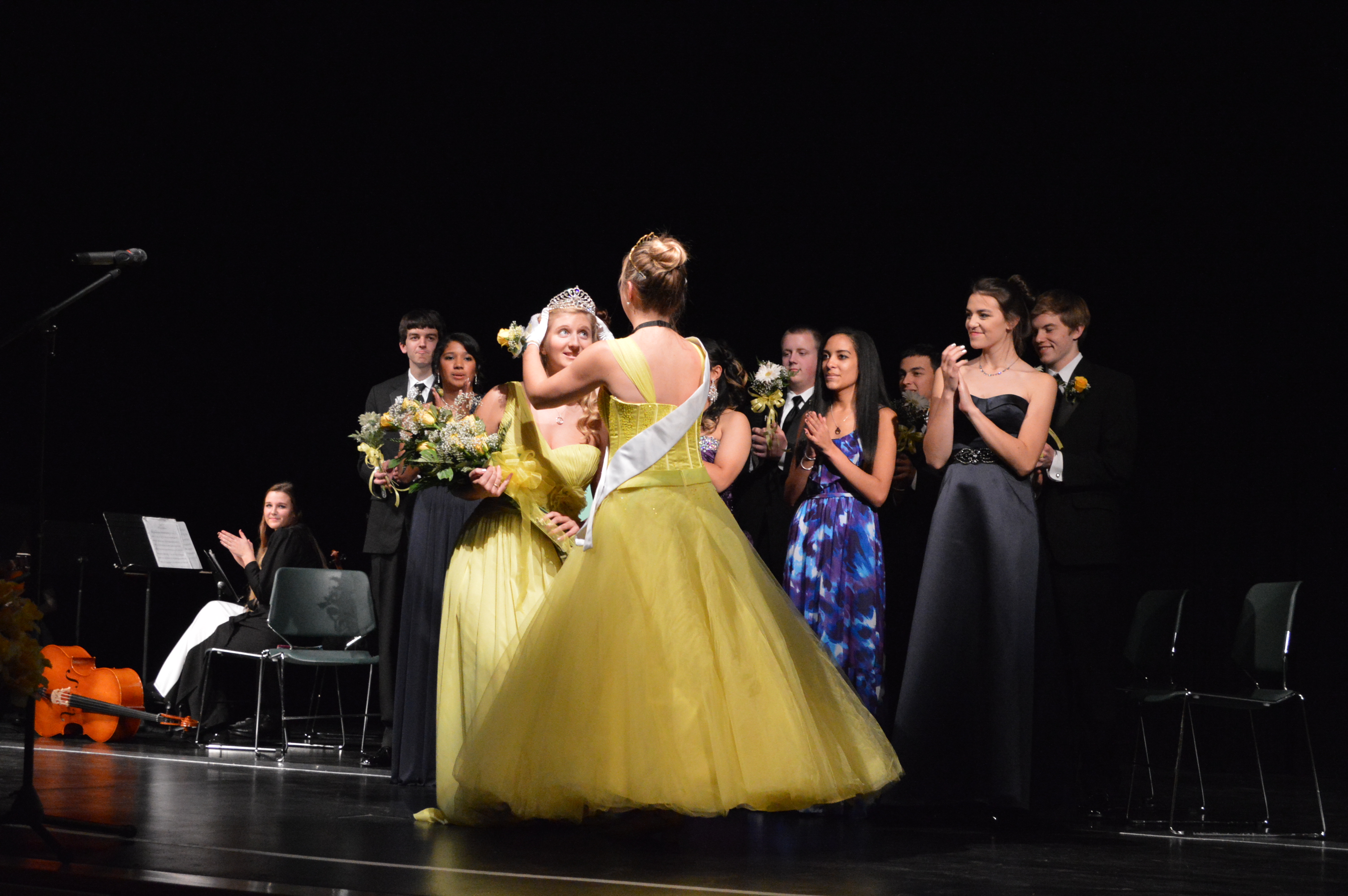 The evening began with a quartet from the GKHS orchestra playing chamber music. Each contestant came in with her escort, gave her prepared speech, answered two impromptu questions, then took a seat on the stage. The six lovely seniors were Jordan Iyall (escort Jared Westerman), Kalabria Fleming (escort Jacob Walker), Micaela Woodley (escort Troy Vandecar), Kallee Delbord (escort Ben Hansen), Denis Julio (escort Michael Knight) and Casey Park (escort Andrew Lang).
