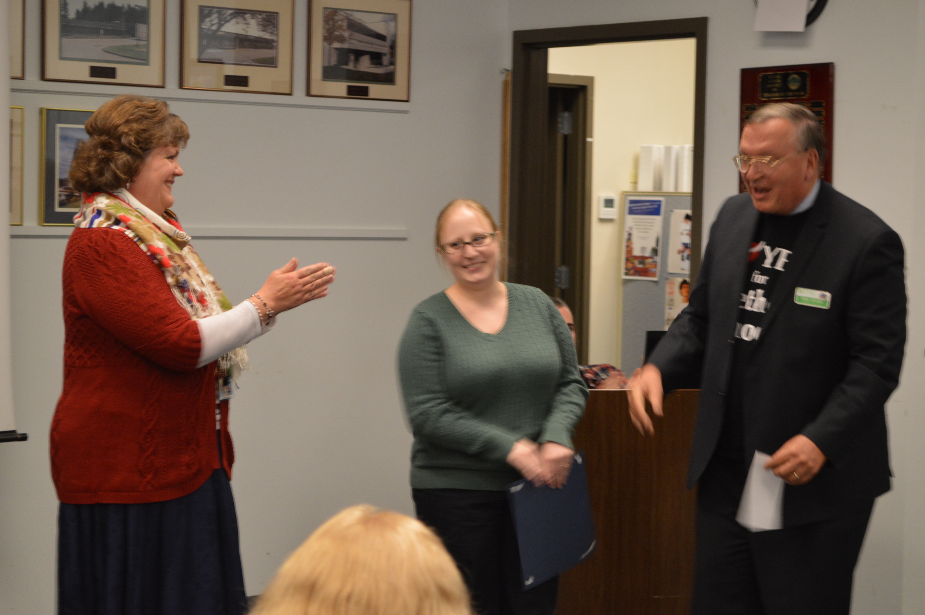 Next was a unique Superintendent’s Superior Service Award. This was given to a teacher at Clover Creek Elementary who was able to save the life of a student who was choking. Ryan Olsen recognized the situation and used the Heimlich maneuver to dislodge a piece of candy that was stuck in the second grade girl’s throat.