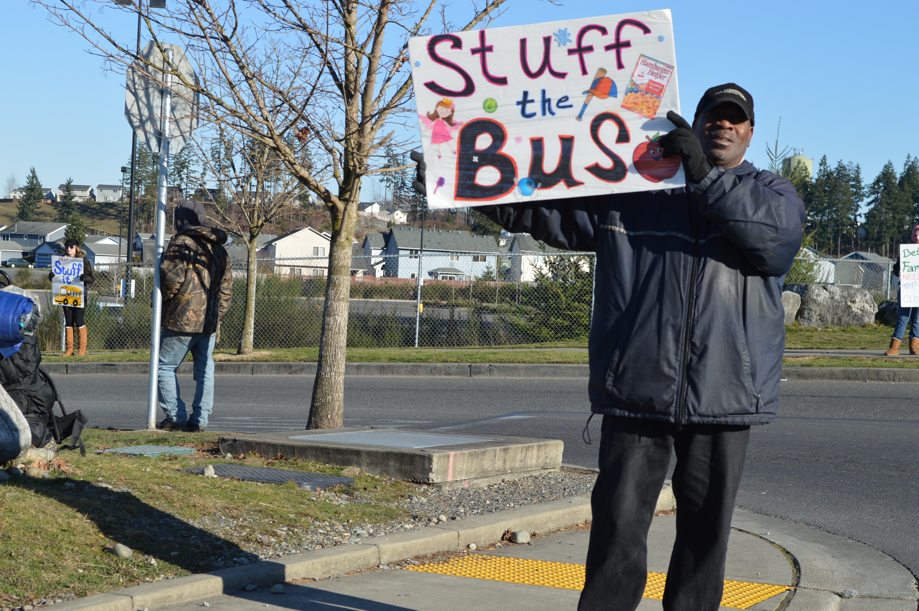 Saturday, December 7 there were buses at the Spanaway Safeway, the Spanaway Walmart and the Fred Meyer on Meridian. There was also a site pre-arranged for the Walmart on Meridian, but when the bus arrived today, the management chased them out of the parking lot saying they would be competing with the Salvation Army who was also on site. There was some disappointment among volunteers over being removed for a site they thought was agreed to in advance.