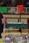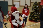 Next was a check in point and on to the gymnasium where the children could make crafts, get balloon animals, swords or hats, choose from an assortment of children’s books, get warm hats and gloves, sit with Santa, learn how to brush their teeth, get school supplies, coloring pens and other supplies, have their face painted or choose from a wide assortment of clothing up on the stage. “Dr. Cleo”the lion from Molina Health Care was walking around posing with kids. Rumor has it that was a dentist from the Linquist Children’s Dental Center.