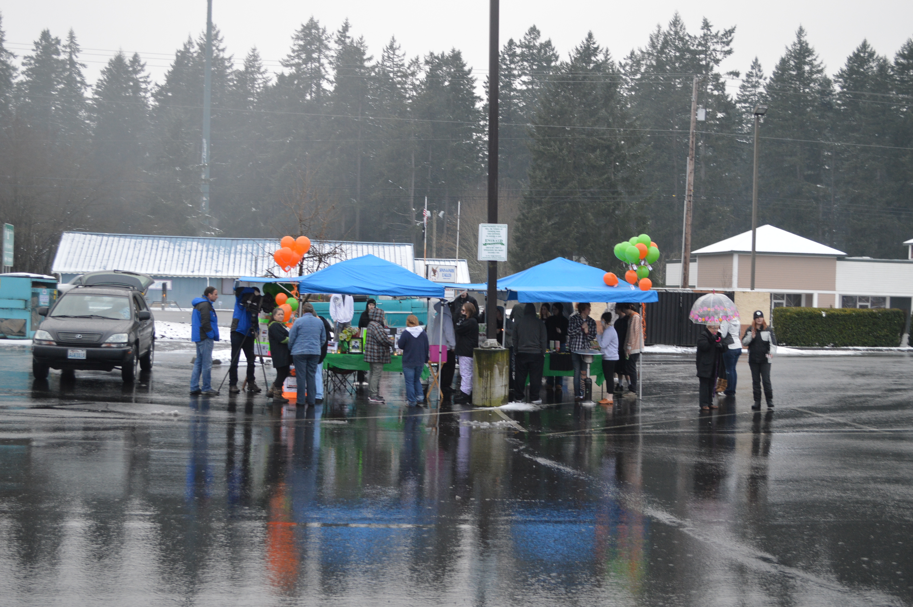 KOMO TV was there, recording the event. There were orange and green balloons to release later in the evening, green cups with votive candles, blue and green 12th man cupcakes, hot cocoa, cookies, signs, and a lot of hugs to go around.