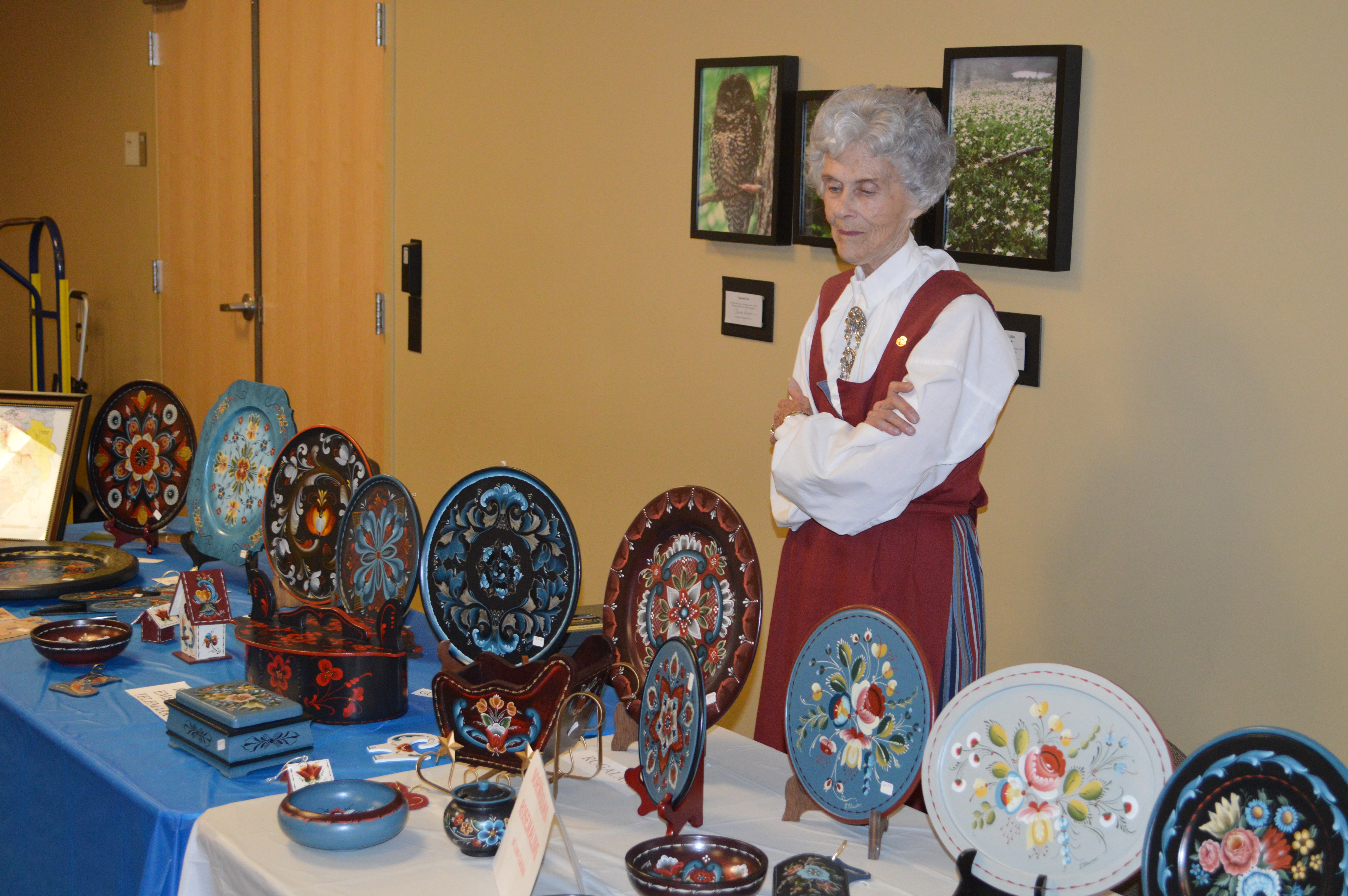 Western Rosemaling Association displays and sells their completed pieces at the annual Norwegian Heritage Festival.