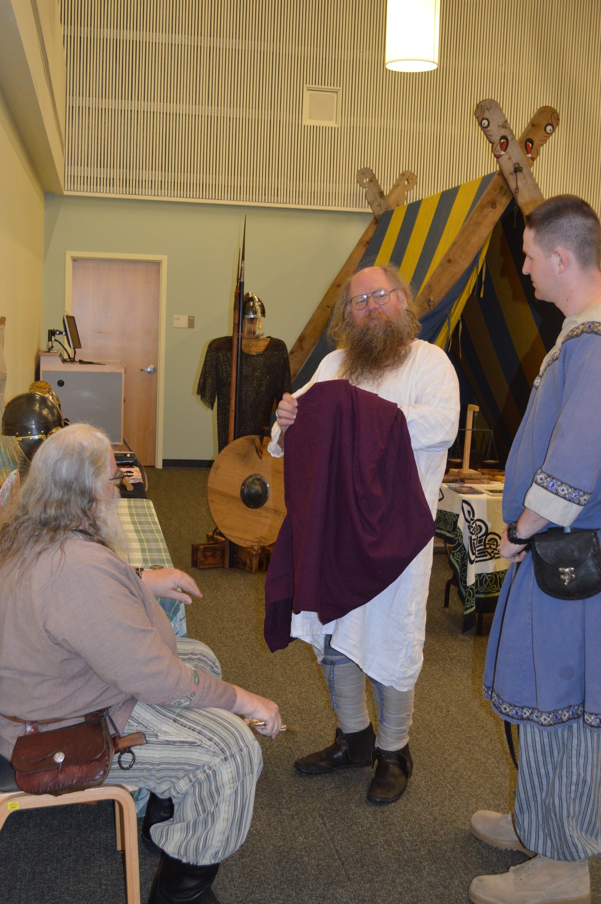 Viking period reenactors make final preparations for the cultural day at PLU.