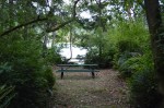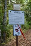 The walk from the parking lot to the end of the trail and back is 2.5 miles. Residents volunteered over a two year period to clear brush for a trail, lay down wood chips to help with soggy clay soil, build hand rails, steps, a raised wooden and metal walkway, add picnic tables, benches and install a solar composting toilet.