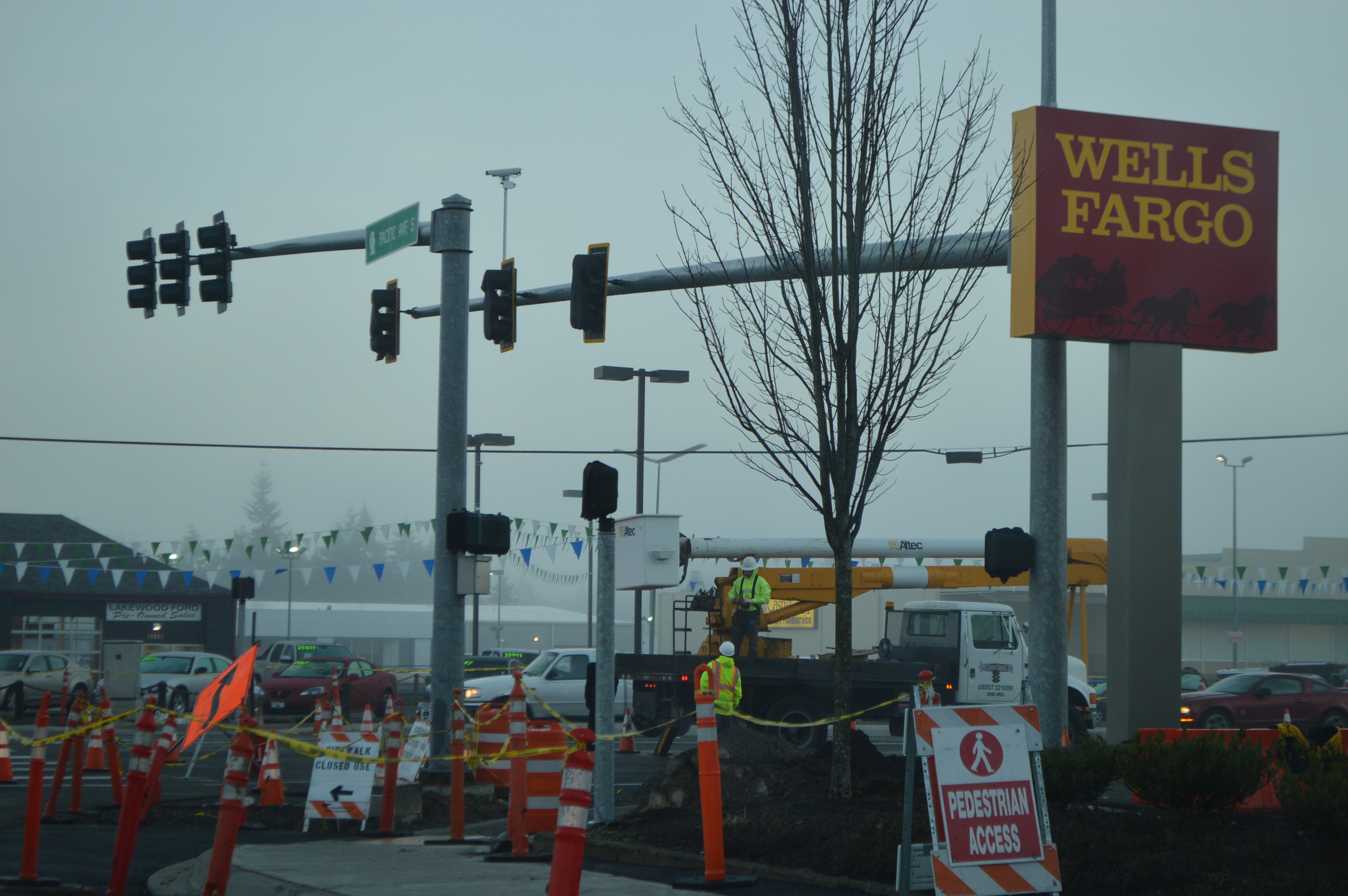 Parkland lately. In the course of the changes in the underground utilities and the sidewalk disruption, several cameras appeared at the intersection. First, on the northbound lanes of Pacific; now, facing the eastbound lanes of 112th Street.