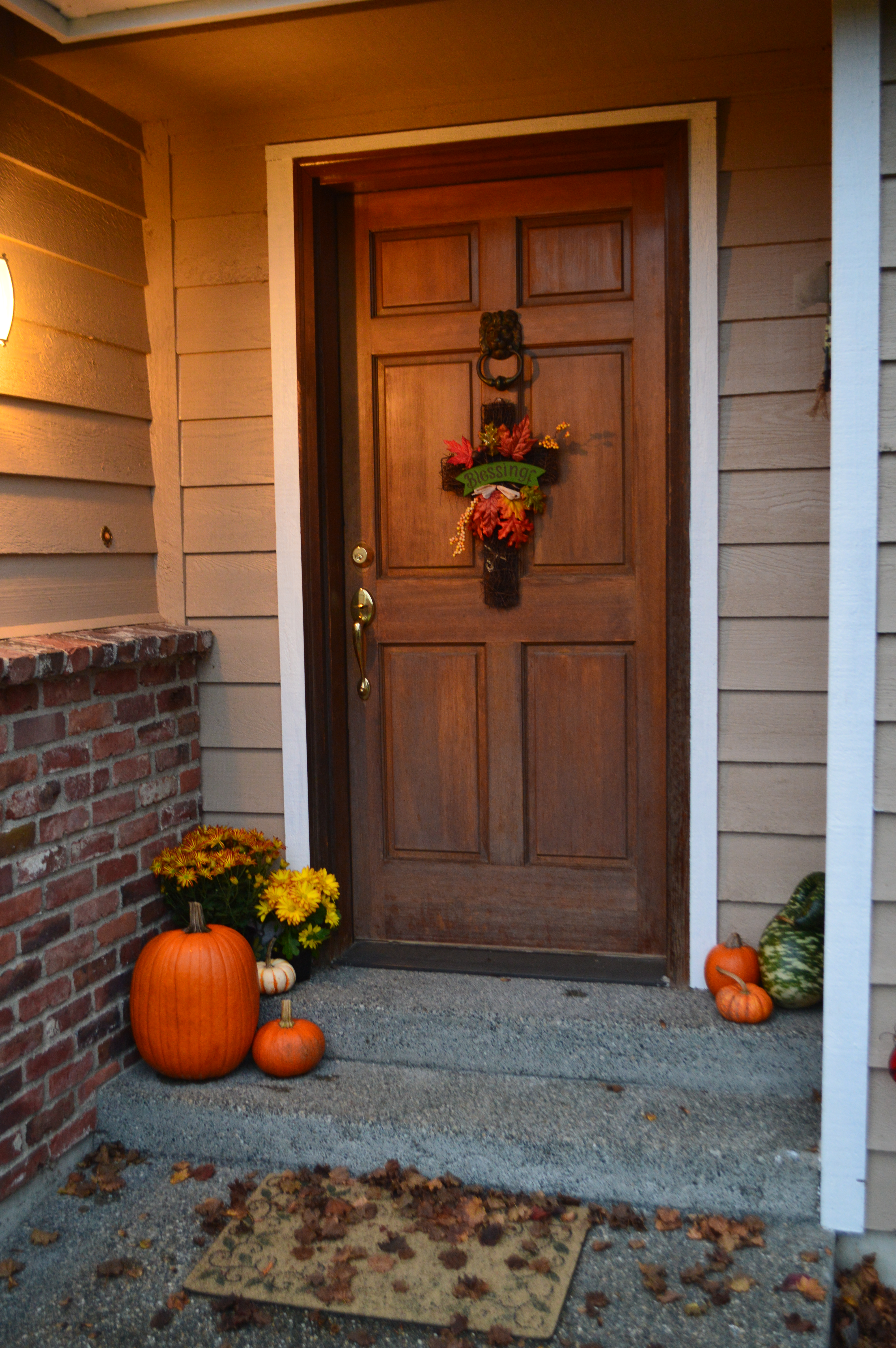 At home, the pumpkins and gourds were placed on the
