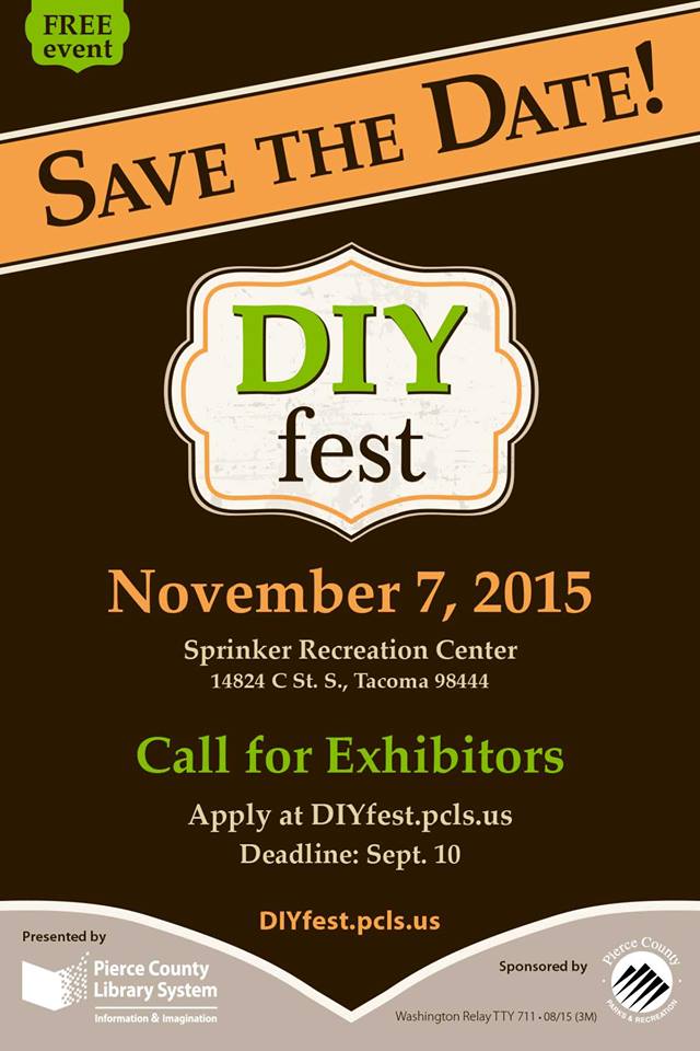 Pierce County Library and Parks & Rec. are co-sponsoring a DIY Fest at Sprinker Recreation Center on Nov. 7 from 10 a.m. to 3 p.m. Are you interested in canning, crocheting or gardening? Can you build or fix nearly anything? Do you fish, forage or