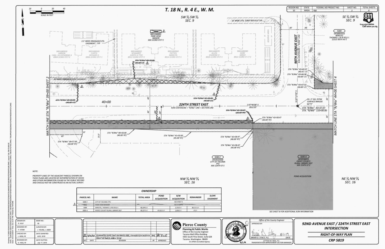 Proposal 2020-109: An Ordinance of the Pierce County Council Authorizing the Prosecuting Attorney to Commence Condemnation Proceedings (After 180 Days from the Date the County Presents the First Formal Offer) to Acquire Real Property for County Road Project (CRP) 5819, 92nd Avenue East / 224th Street East Intersection and Providing Notice to Affected Property Owners of Record of the Final Action Specifically Relating to the Following Properties: Tax Parcel Numbers (TIN) 0418166015, 0418166014, 0418166013, 0418166012, 0418166026, 0418097016, 0418093004, 0418166016, 0418161028, 0418094007, 0418094045, 0418094053. (Condemnation Proceedings – Grant of Authority to Prosecuting Attorney)