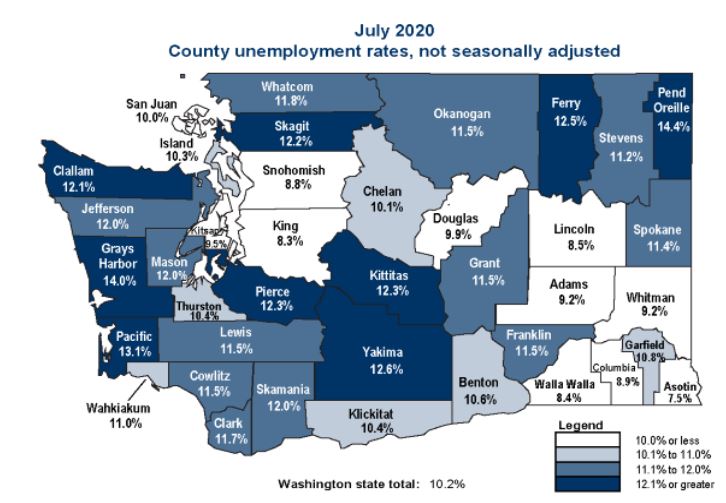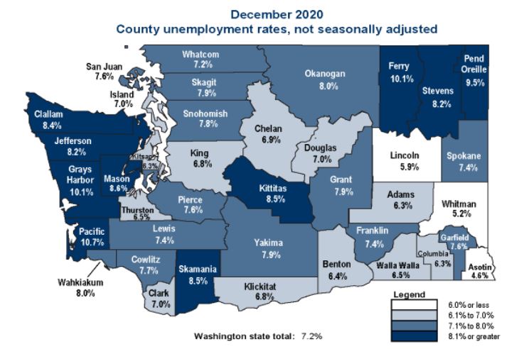 Each month the Washington Employment Service Department releases unemployment by county figures. Here are a few so you can see what has been happening in the past few months.