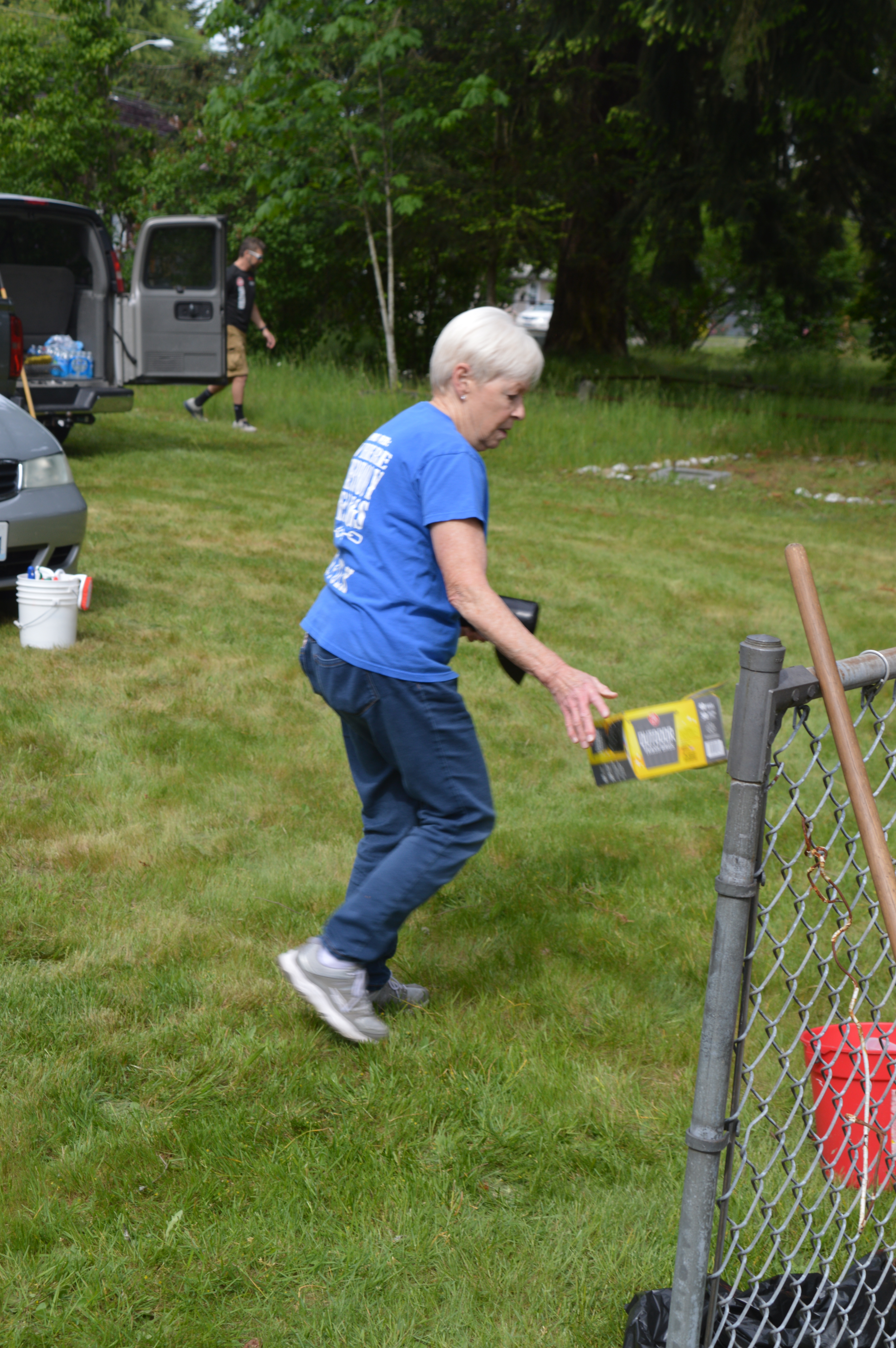 SPANAWAY — On Wednesday, May 26, youth from the Church of Jesus Christ of Latter-day Saint Congregations in Spanaway, Elk Plain, Rainier View and Firgrove came to Spanaway to tidy up the pioneer cemetery. Fifty eight kids from 10 to 18 and twenty adults assisted with picking up branches, trimming bushes, mowing the lawn, weed whacking and scrubbing old grave markers of moss.