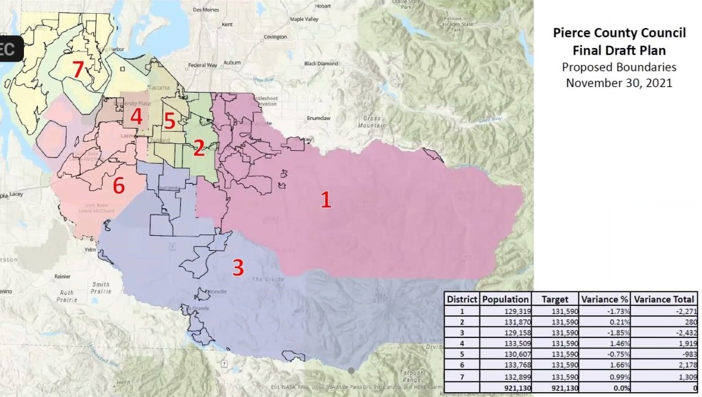 The final draft plan along with previous meeting materials can be found online at www.piercecountywa.gov/districting.