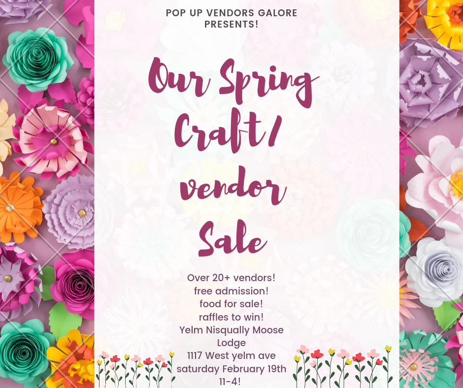 *Welcome Spring! Saturday, February 19th, 11:00 a.m. to 4:00 p.m. at Yelm Nisqually Moose Lodge