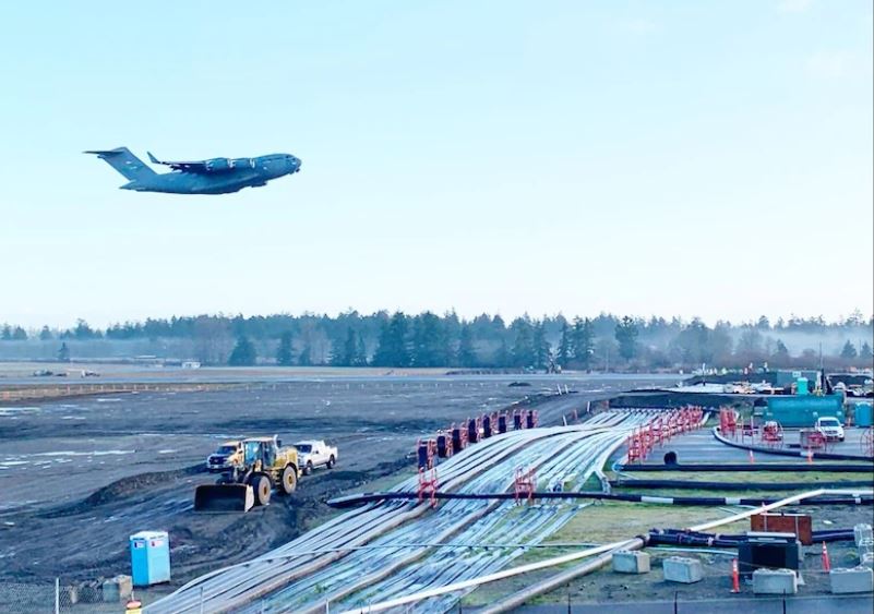 A huge project on McChord Field took place during 11 months in 2020, to replace the broken culverts that guide the creek under the runway, taxiway and infield.