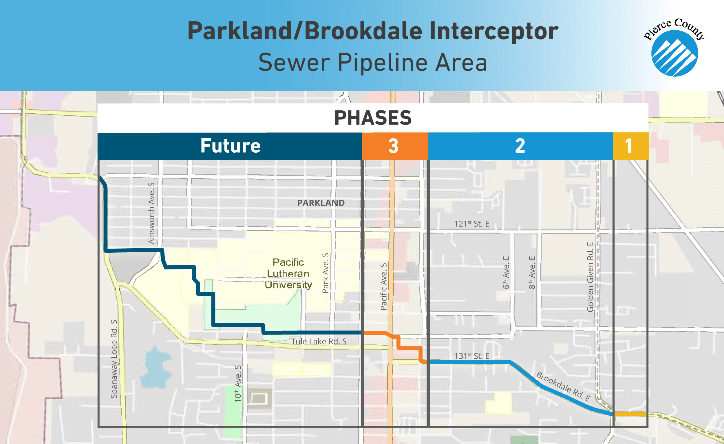 - Future phases will continue the 72-inch interceptor to the connection point at the Spanaway Loop Bypass Interceptor at the intersection of 116th Street South and Spanaway Loop Road South