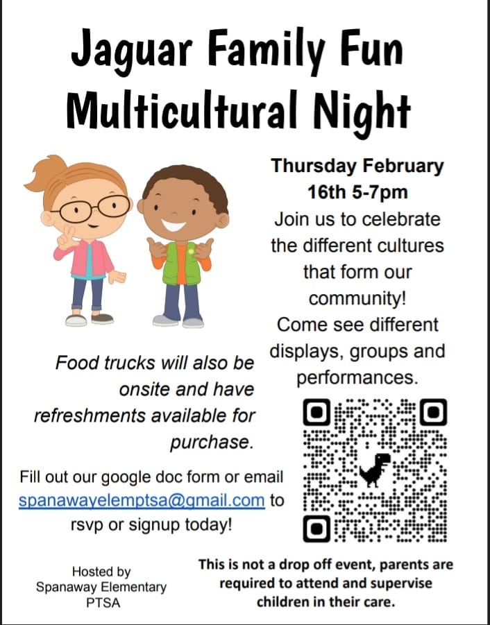 The Parent Teacher Student Association (PTSA) at Spanaway Elementary School (c 1855) is holding a fundraiser on February 16 from 5 to 7 p.m. at the school, 215 166th St S, Spanaway, WA 98387. There will be booths from various local cultural groups, including PLU’s Scandinavian Cultural Center. It is Black History Month, so expect some local history as well. There will be food trucks in the parking lot serving some tasty grub, displays and performances.