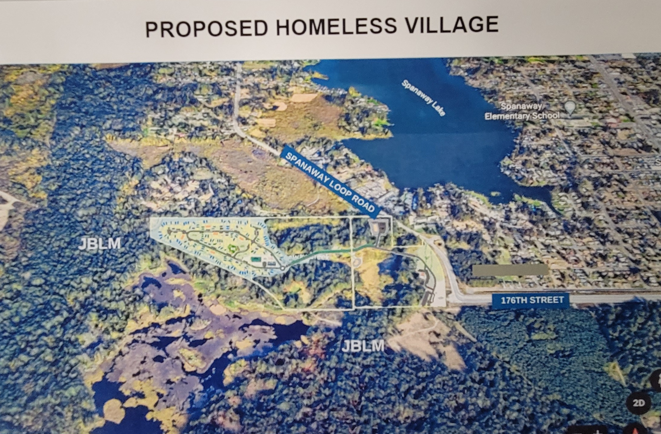 The Pierce County Council is now considering the passage of the zoning change to South Hill, Parkland-Midland-Spanaway, Frederickson, and Mid-County Plan Areas to allow tiny home villages in the Residential Resource Zone. The current issue is whether a tiny home village is appropriate in the water resource are entering Spanaway Lake from the southwest.