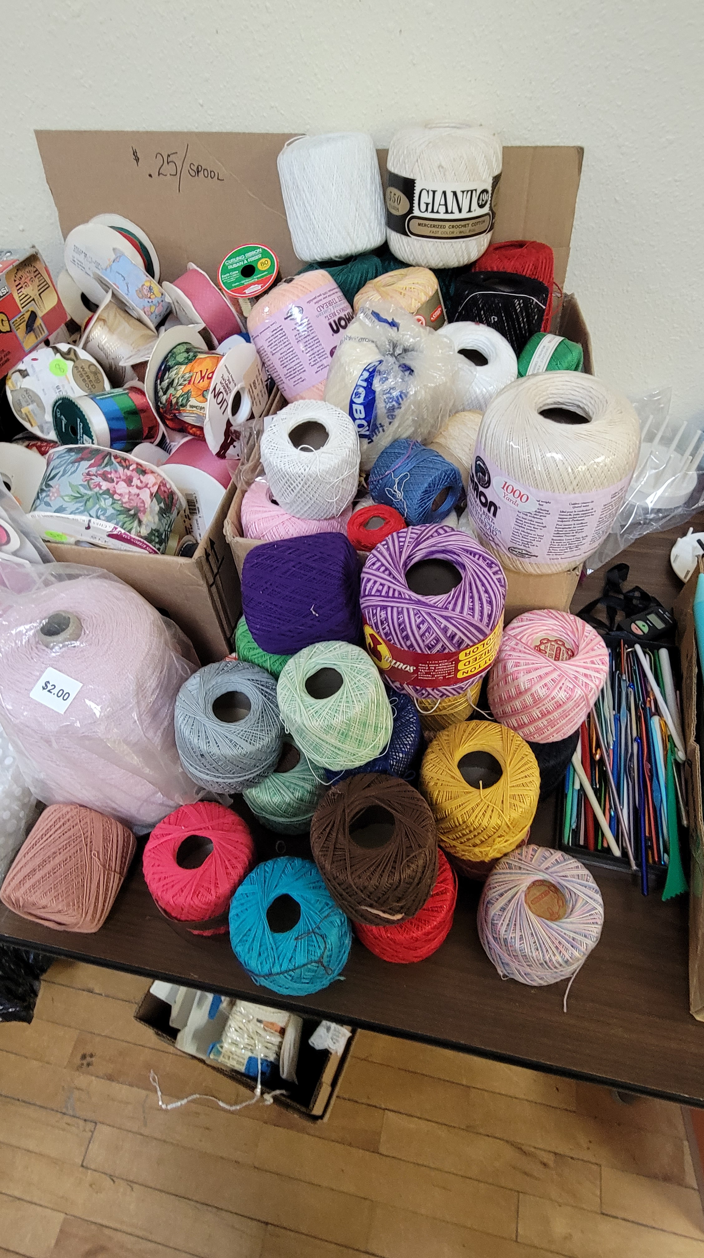Craft supplies-yarn; crochet cotton; ribbons; ceramics; paints; wood working; cross stitch; plastic canvas