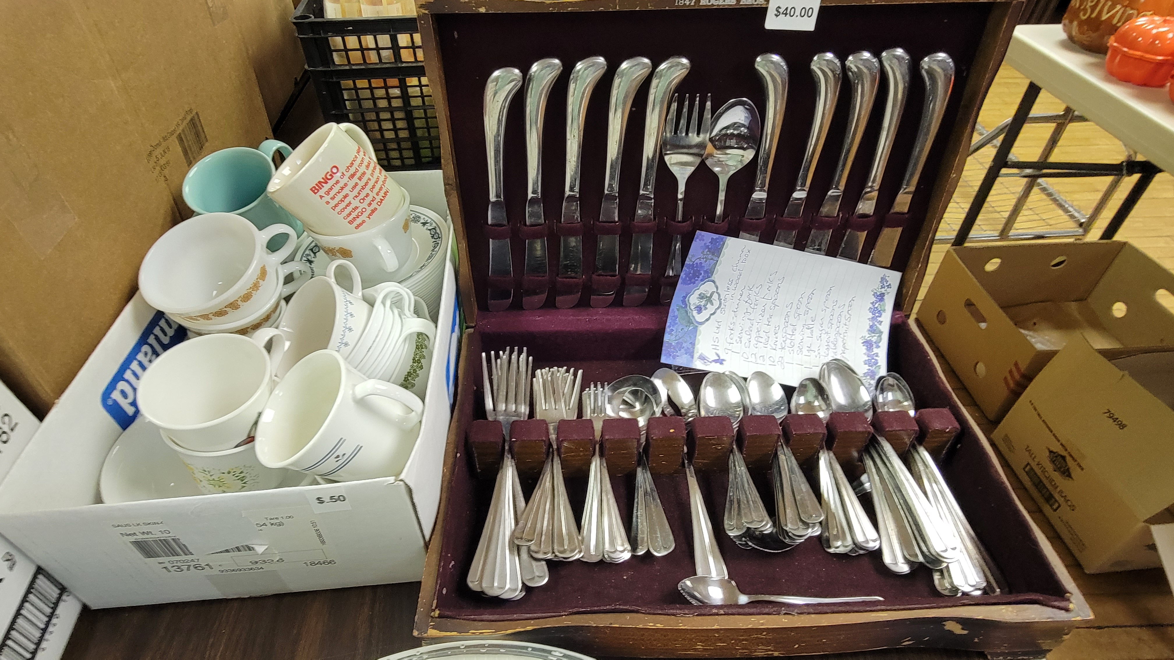 Restaurant supplies – large quantities of dinnerware; paper products; commercial propane stove/cooktop; vintage avocado fridge; household freezers; ice machine; brand new single door refrigerator; brand new single door freezer; slightly used double door freezer; brand new double door freezer; slightly used triple door refrigerator; brand new touch-free soap, hand sanitizer, and paper towel dispensers, with refills for all; 6’ and 8’ heavy duty folding wood tables; card tables; folding chairs with rolling storage racks; juice machine; and much more
