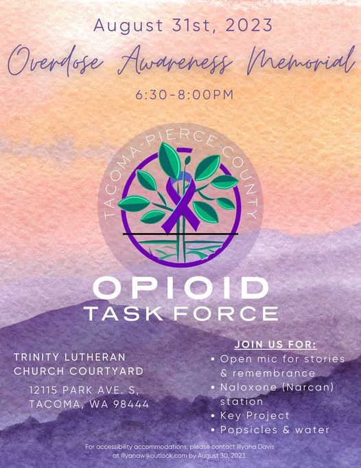 August 31 is International Overdose Awareness Day, the day will be commemorated as an Opioid Awareness Day from 6:30 to 8 p.m. at Trinity Lutheran Church in Parkland.