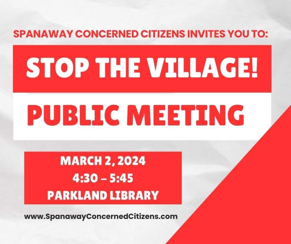 Bring your questions, bring your friends & neighbors and help us STOP THE VILLAGE!