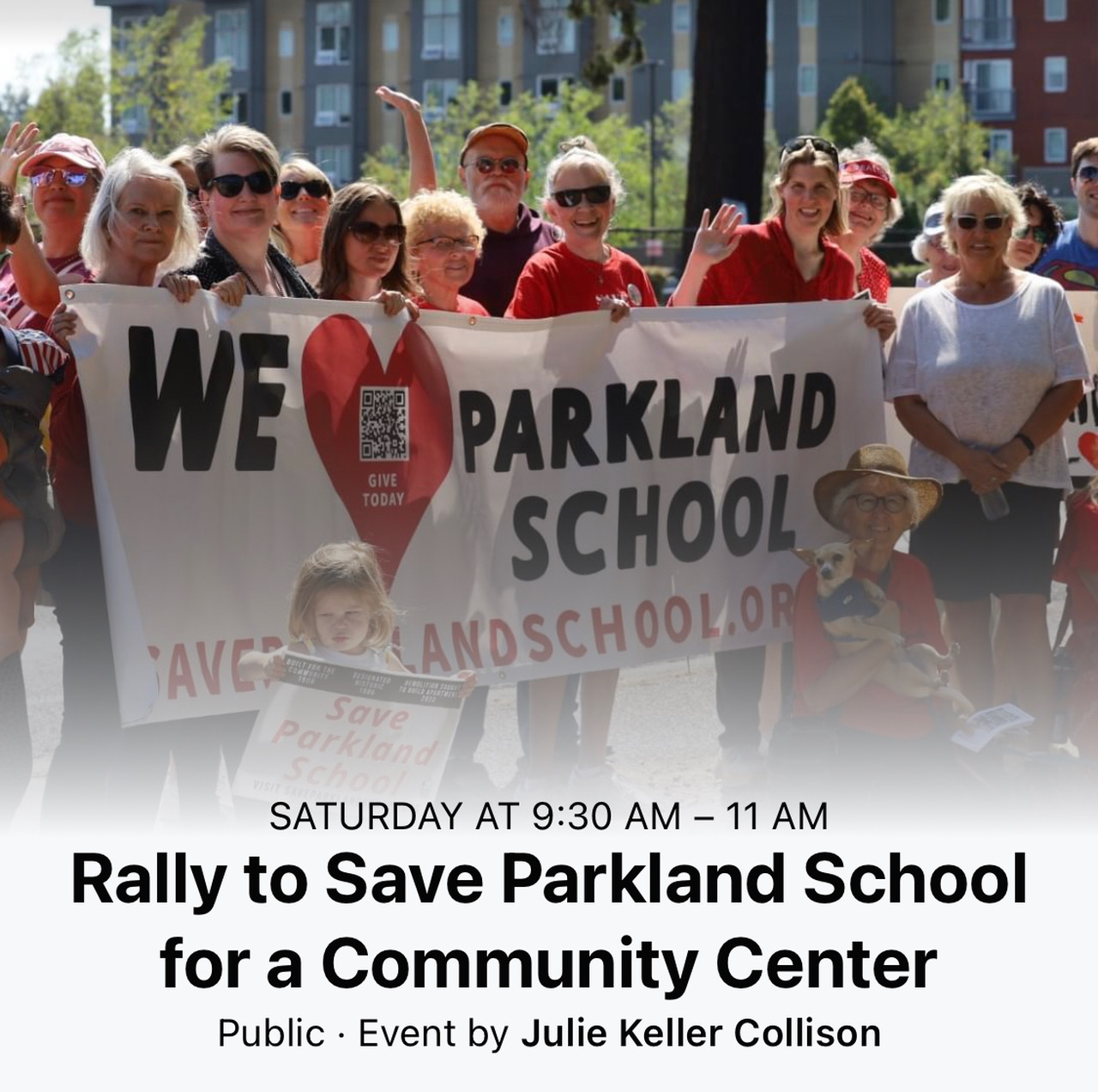 We need to keep our visibility of our effort going! We haven’t rallied for awhile. Plus, PLU is having a Track invitational that will bring extra traffic to Parkland.