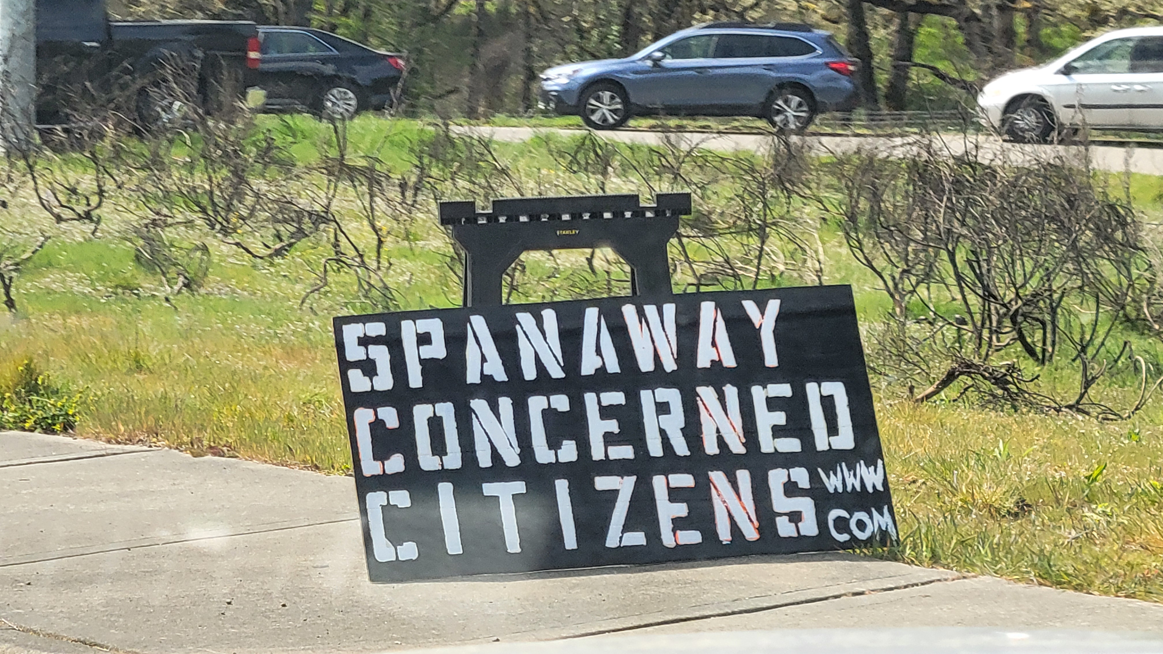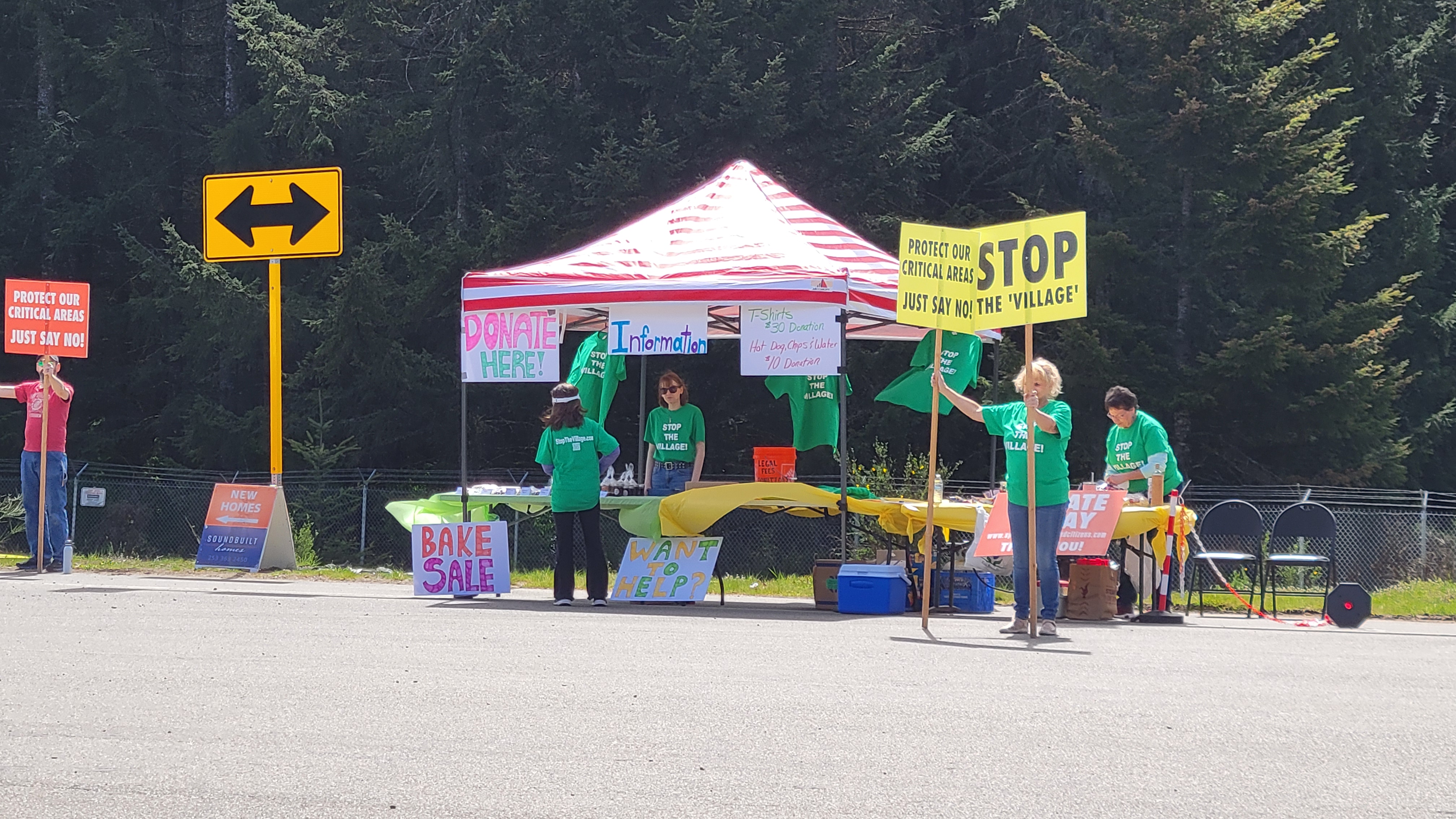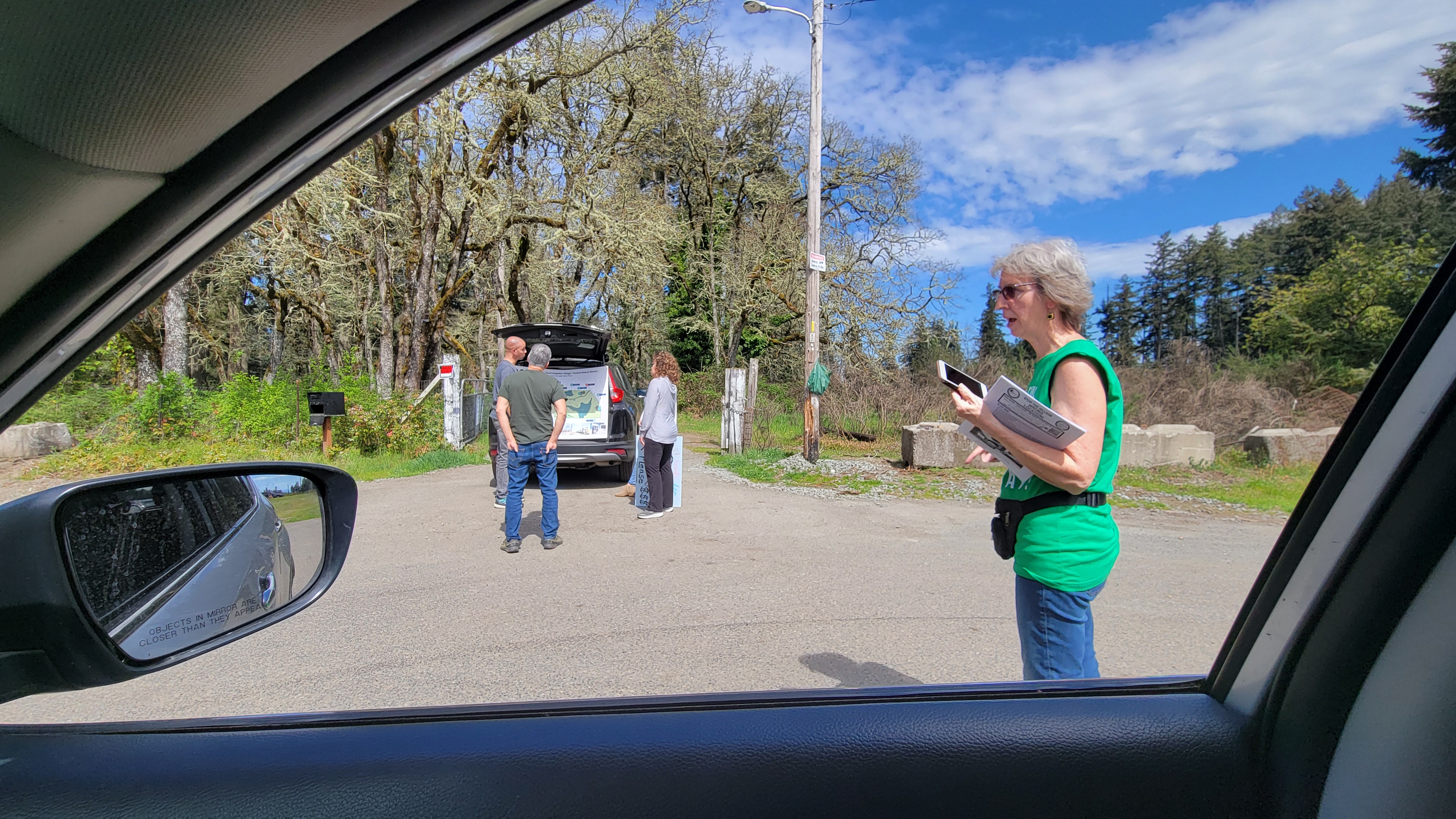 This is a collection of photos from April 20, 2024 at the site of the proposed Pierce County Village. Under the Cross Base Highway sign – another broken promise.