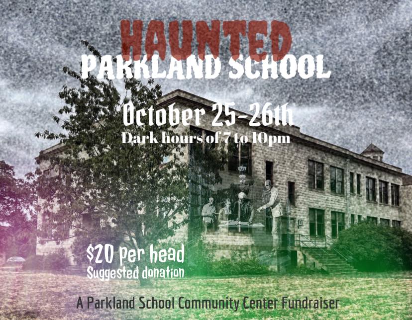The Haunted Parkland School will appear October 25 and 26 this year. From 6 p.m. to 10 p.m., you can stop by, purchase a ticket, and enjoy the thrill of being in a historic building with ghosts, ghouls and other things that bump in the night. No guarantees that some real Parkland spirits won’t make an appearance either.