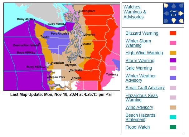 Cliff Maas, former UW professor of meteorology says the low-pressure system forming offshore is reminiscent of 1962’s Columbus Day storm. Winds will possibly reach hurricane force, especially in coastal areas. You can read his blog here. This will impact Washington, Oregon, and British Columbia.
